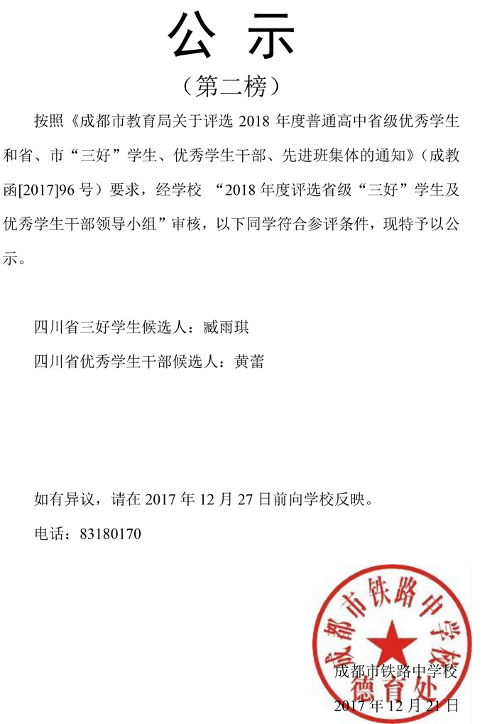 发表时间:2017-12-28 16:42:05 来源:成都市铁路中学 编辑:yuyu