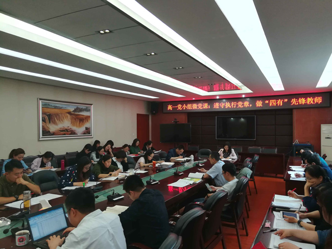 | 2018年5月6日至8日,我校金东清副校长分别在高中三个年级的党小组会议上,为与会党员上了主题为“遵守执行党章,做‘四有’先锋教师”的微党课。