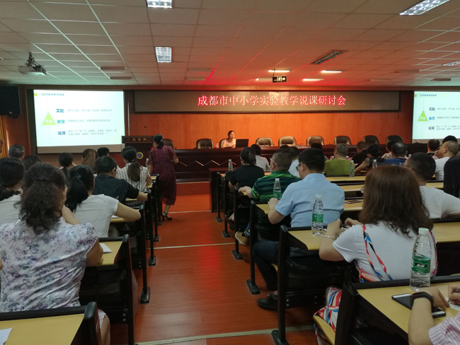 | 5月21日下午,“2018年成都市中小学实验教学说课研讨会”在我校学术报告厅成功举行。国家级评审专家梁雪梅在研讨会上进行实验教学说课专题讲座;在“四川省2017中小学实验教学说课现场评选”活动中获得一等奖的我校生物教师付娅娣为与会人员进行说课优秀案例现场展示。研讨会上,还安排布置了2018年实验教学说课及危化品管理平台的有关工作。