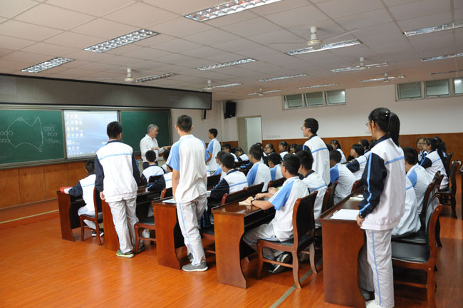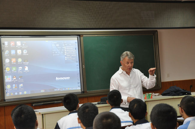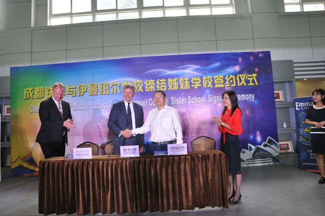 签约仪式结束后,双方校长就两国中学教育教学和办学理念进行深入交流。成都铁中杨云雄校长谦逊恳切,一方面认真介绍了本校基本情况,另一方面虚心听取伊曼纽尔学校的办学经验。帕特里克英纳斯伊尔校长开朗大方,不但介绍详尽,而且还亲自上阵,为铁中学子带来生动的一课!
