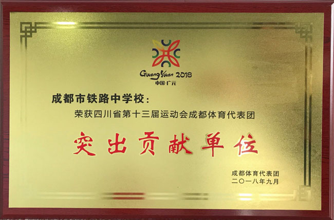 | 在刚刚结束的“四川省第十三届运动会成都体育代表团总结大会”中,成都铁中以优异的表现,获得“突出贡献单位”荣誉称号。 在不久前结束的四川省第十三届运动会上,我校高三年级俞慧琳同学为成都体育代表团夺得武术首金。该同学为武术运动健将,曾经代表中国队在第六届世界青少年武术锦标赛、第八届亚洲青少年武术锦标赛获得冠军!五星红旗因她升起!成都铁中亦为她骄傲! 武术,作为成都铁中传统体育项目,已多次在各级各类比赛中斩获金牌。成都铁中也向中国人民大学、北京体育学院、厦门大学等全国著名学府输送多名优秀武术人才。今天的荣誉再次证明了成都铁中的学子真正做到了德智体美全面发展!