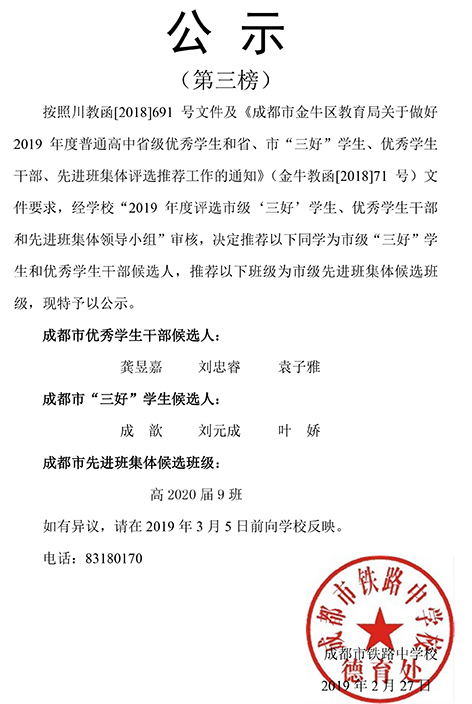 发表时间:2019-2-27 10:13:19 来源:成都市铁路中学 编辑:yuyu