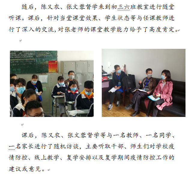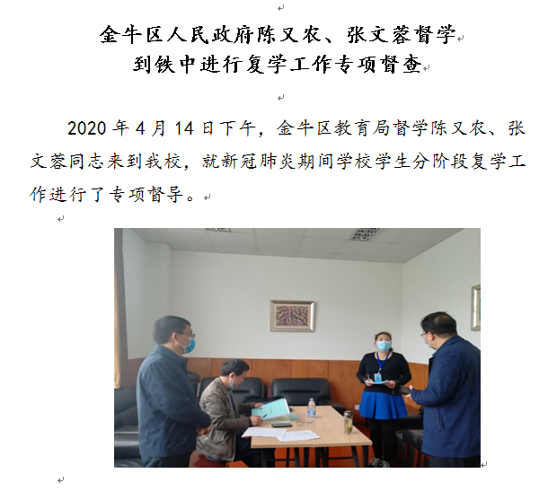 金牛区人民政府陈又农、张文蓉督学 到铁中进行复学工作专项督查