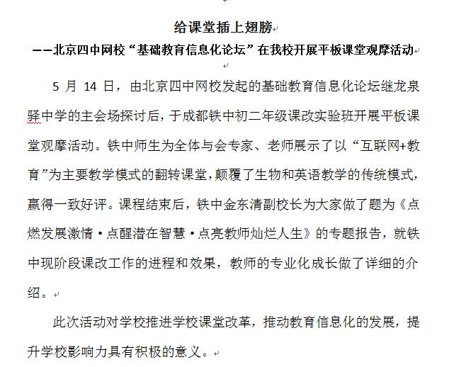 给课堂插上翅膀————“基础教育信息化论坛”在我校开展平板课堂观摩活动