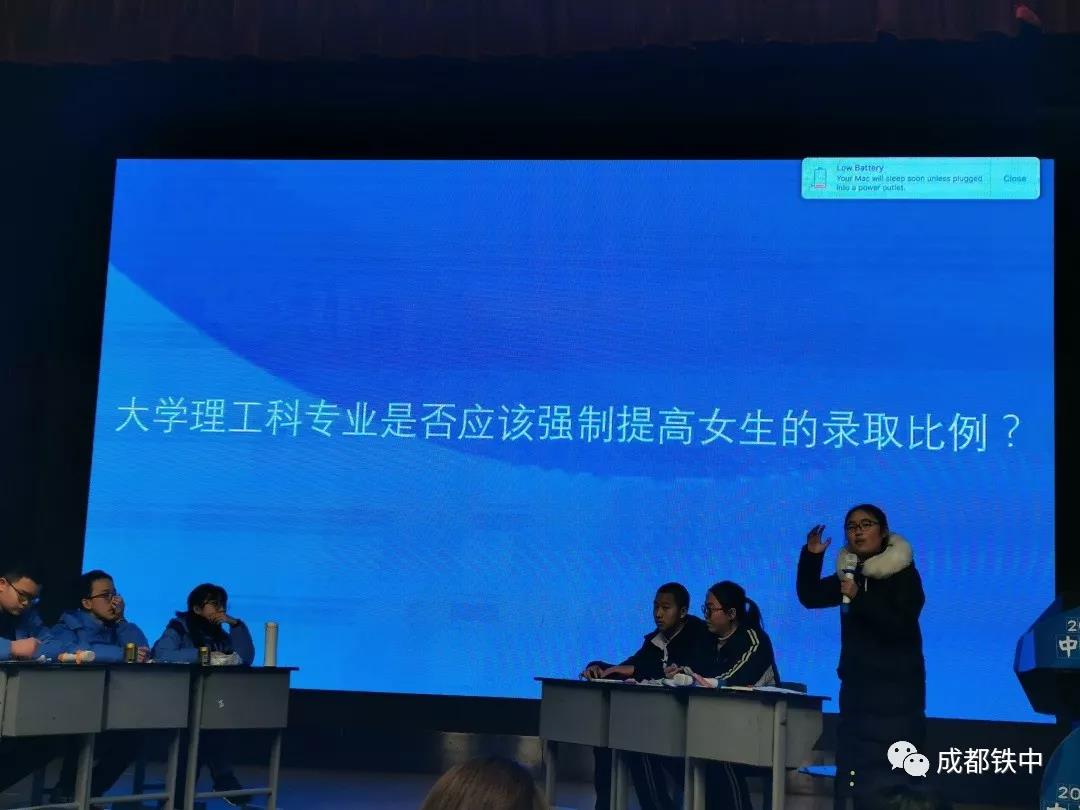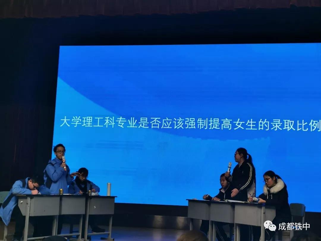 成都铁中辩论队连续两天“舌战群雄”,经过残酷的淘汰赛,连续五轮的循环赛,杀入四强。在20日上午的半决赛和下午的总决赛中以绝对优势战胜实力强劲的对手,获得初中组冠军!