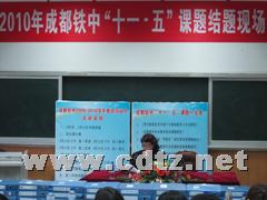 “成都铁中‘十一·五’科研课题结题现场会”在学校多媒体教室举行。参加现场会的有金牛区教培中心领导和教研员,以及区内承担“十一·五”科研课题研究的兄弟学校课题组的老师们。