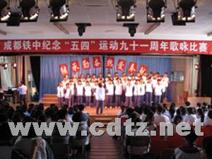 5月4日下午,由成都铁中政教处和团委组织的纪念五四运动91周年歌咏比赛在学校多功能厅隆重举行。