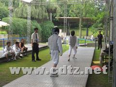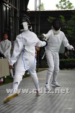 在今年暑假期间,铁中女子击剑队参加了全国和四川省击剑赛,取得了非常优异的成绩。在重庆举行的全国业余击剑赛上,铁中女子击剑队夺得了女子重剑团体金牌,黄菁菁同学获女子重剑个人冠军。在成都举行的四川省中学生击剑对抗赛中,铁中女子击剑队勇夺女子重剑团体冠军,黄菁菁同学夺得了女子重剑个人金牌。