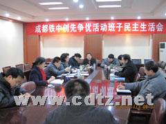 | 2011年1月13日,成都铁中党总支召开了创先争优活动领导班子民主生活会。班子全体成员参加了会议,各支部书记和中层正职主任应邀列席会议。