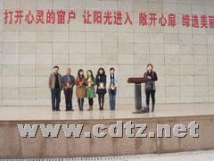 2011年4月11日升旗仪式上,程主任隆重地向全校师生介绍了我校的六位心理健康老师,并由吴书记为他们颁发了成都铁中心理健康教师的聘书。之后,胡琳老师作为心理健康教师代表进行了“打开心灵的窗户、敞开心扉”的国旗下讲话,宣布成都铁中“心语小屋”重新向全校学生开放。