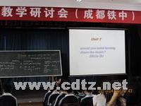 在本次活动中,叶老师先为大家简单介绍了本期以来金牛区初中英语教研活动的开展情况。随后我校黄晓燕老师以及来自石室外语学校、44中、交大附中、蜀西实验及36中的6位老师通过微格教学的方式(每位老师只上10分钟左右)为全体到会教师献上了精彩的初中英语功能对话课中语法教学的展示课。她们在课堂上通过感性积累(导入呈现,机械操练,意义操练,交际运用,强化巩固)到理性上升(提示注意,观察发现,分析思考,归纳小结,补充完善,得到规则)再回到实践(巩固练习,综合运用练习)的这种教学模式值得我们借鉴和学习。也更加让我们明白到句型语法的学习重点在于:操练句子上口,记忆句型在心,理解结构在脑。承担该课的是我校初二四班、五班的全体同学,同学们的表现得到了与会老师的交口称赞。