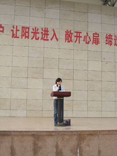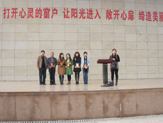 2011年4月11日升旗仪式上,程主任隆重地向全校师生介绍了我校的六位心理健康老师,并由吴书记为他们颁发了成都铁中心理健康教师的聘书。之后,胡琳老师作为心理健康教师代表进行了“打开心灵的窗户、敞开心扉”的国旗下讲话,宣布成都铁中“心语小屋”重新向全校学生开放。