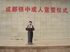2011年5月3日升旗仪式上,成都铁中高三全体学生参加了隆重的成人宣誓仪式。全体高三同学面对国旗庄严宣誓:立志成为有理想、有道德、有文化、有纪律的社会主义公民。