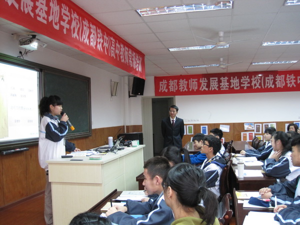 课后,本校和兄弟学校的听课教师对这堂课一致给予了高度评价,他们认为,本堂课整个课程自然流畅,教师精心组织设计,学生积极参与,热情投入,特别是新课标的精神在本课中得到了充分的贯彻,这体现了成都铁中作为课程改革样本校、基地校,在课改中的积极探索和丰硕成果。