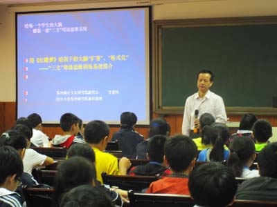 在讲座中,甘教授围绕“三文母语思维训练系统”进行讲解、示范、及现场训练。为时一个小时的讲座,让师生们真切地感受到:“三文母语训练系统”对提高孩子们记忆能力,提升语文学习能力有着事半功倍的效果。