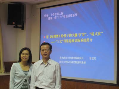 9月24日下午,应学校邀请,苏州南社文化研究院副院长、四川大学苏州研究院兼职副教授甘建民老师在我校五楼多媒体教室为初中语文教师及学生作了题为“用《红楼梦》给孩子的大脑扩容、格式化------三文母语思维训练系统简介”的专题讲座。