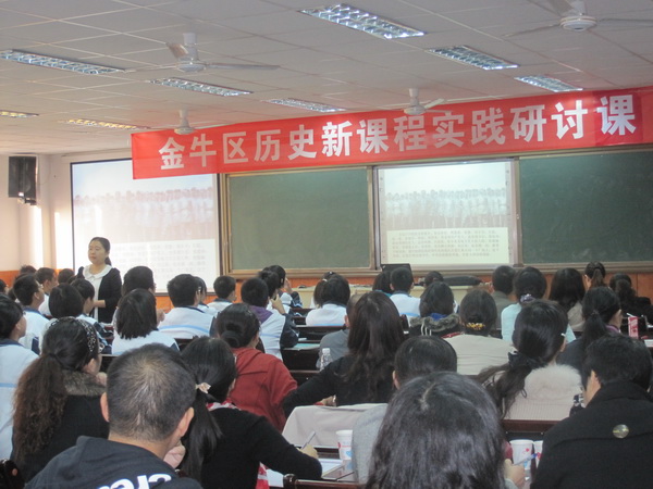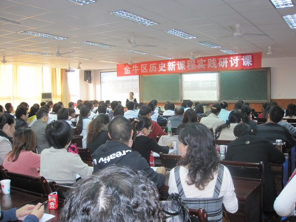 10月26日,金牛区历史教研活动在我校成功举行。本次活动的主题是“历史新课程实践研讨”。我校徐蔚老师在活动中作了教学展示。课后,听课教师从教学、教师、学生等方面进行了评议。