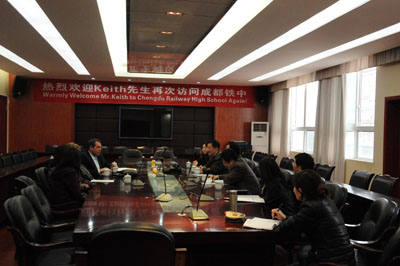 继去年3月到访成都铁中之后,昨日,来自美国休斯敦的Keith先生一行再次来到成都铁中。金牛区教育局副局长邹罡、成都铁中吴烈书记及金东清副校长等领导与来访的客人就缔结姊妹学校、进一步加深合作进行了沟通与交流并达成共识,双方表示将积极推进合作与交流,为开拓师生国际视野,促进教育国际化、现代化作出积极努力。