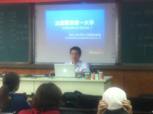 2013年6月19日上午,法国雷恩第一大学中国学生遴选办公室副主任陈苏骥先生来到成都铁中,为有意向赴法留学的我校高三学生作情况介绍。