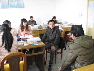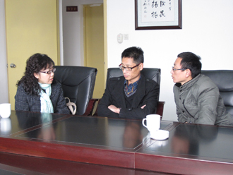 交流教师合影 与淮口中学领导交流