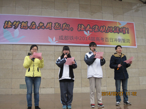 百日誓师赴高考 十载寒窗志昂扬 | 发表时间:2014-2-28 15:03:07 来源:成都市铁路中学 编辑:yuyu | 点击/评论:4135/0 |
