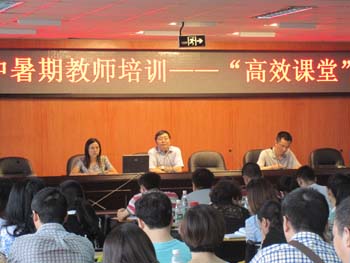 本次培训围绕高效课堂这一主题,通过专家讲座、汇报交流、教学论坛等多种形式展开。培训中,吴烈书记、金东清副校长分别就师德建设、《高效课堂》专题同老师们进行了交流。之后,杨小川、王闽、任家海、宋冬明等高初中骨干教师分别就班主任工作和班级管理、赴山东昌乐二中考察学习的感悟以及初中年级正在实施的小组合作学习等与参培老师作了交流和分享。