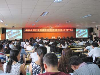 下午,来自成都市教育科学研究院教育发展研究所刘旭副所长为大家作了《创新课堂教学,提高课堂效益》的专题讲座。刘所长从问题、评价的标准、具体的指向等方面为老师们诠释了高效课堂的内涵和意义。丰富的案例、精彩而生动的讲述,赢得老师们的一致好评。