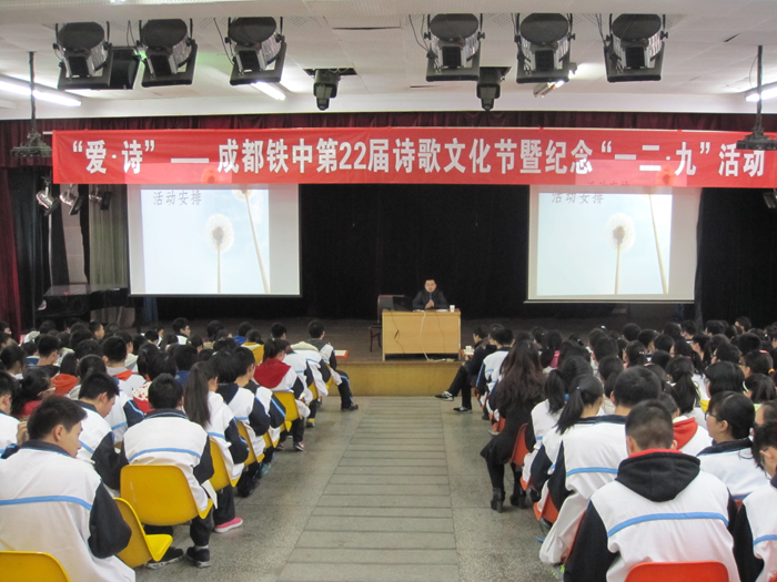 成都铁中举行第22届诗歌文化节暨纪念“一二.九”活动 | 发表时间:2014-12-15 15:15:32 来源:成都市铁路中学 编辑:yuyu | 点击/评论:6783/0 |