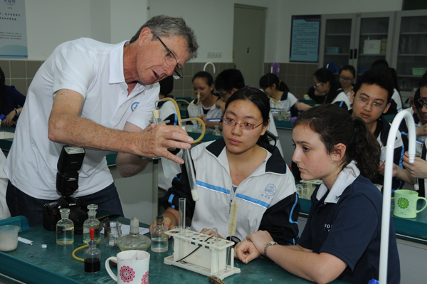 4月28日,成都铁中再次迎来了来自澳大利亚珀斯的珍贵客人。去年,成都铁中代表成都市接待了来自澳大利亚珀斯珊顿中学的10名游学学生,给对方留下了十分深刻的印象,也架起了友谊的桥梁。今年,成都铁中虽然不是接待学校,但是,澳方客人仍然到访学校,游学学生与铁中高一的学生一起,共同聆听了一堂化学实验课。执教该课的老师是铁中年轻的化学教师曾娜,是留学于英国的博士。曾老师用纯正的英语执教化学,令来宾大感惊讶,赞不绝口。