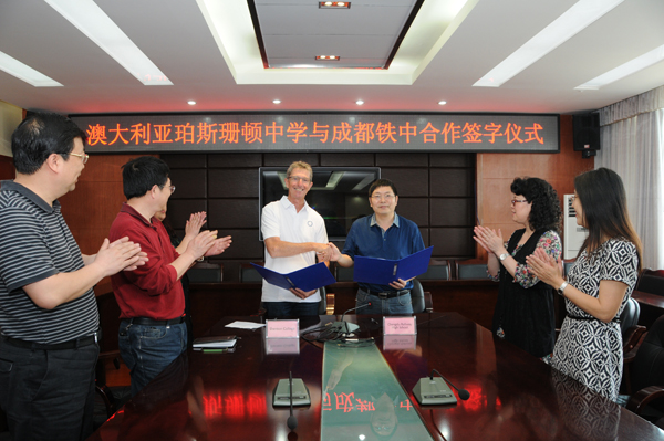 4月28日,成都铁中与澳大利亚珊顿中学草签了交流合作协议。这是4月以来,成都铁中在对外交流方面的第二件盛事。此前,成都铁中刚与首都名校——北京大学附中签订了合作协议。