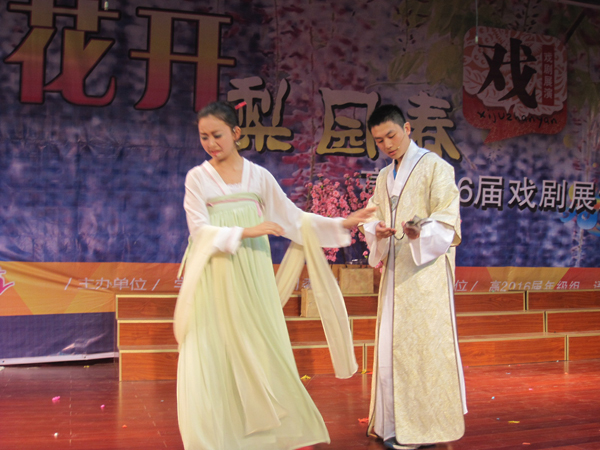 以“紫藤花开·青春绽放”为主题的这次戏剧展演活动,共有《雷雨》、《孔雀东南飞》、《白蛇传》、《家》、《桃花扇》、《项链》等11个剧目展出。通过排演这些剧目进一步加深了同学们对戏剧的了解,无论是从编剧、导演、演员,还是服装、道具、音乐,每个班都力求尽善尽美,同学们的积极性、热情以及才情和意气都被点燃,整场展演活动展现了极高的艺术性,获得了观众的高度评价。