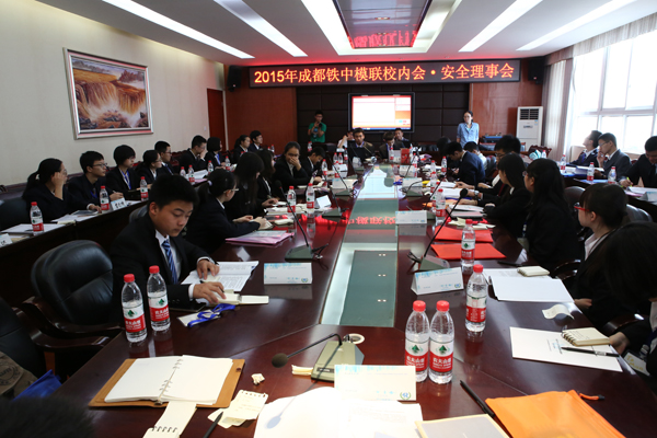 2015年5月9日,成都铁中模拟联合国社团在成都铁中召开了为期一天的“2015年成都铁中模拟联合国校内会”。本次活动共由成都铁中德育处,成都铁中校团委,以及成都铁中模拟联合国社团举办,共有来自成都七中(林荫校区),树德中学(光华校区),石室中学(北湖校区),四中天府中学,成都列五中学,盐道街外国语学校,成都玉林中学等学校代表受邀参加此次模拟联合国会议。