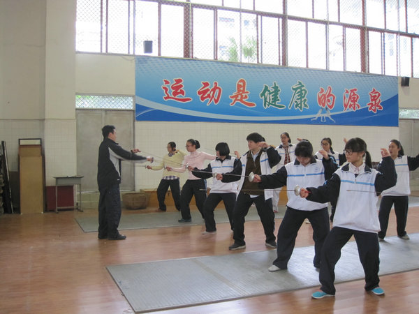 实战姿势、基本步法、直刺技术,教学比赛。 |
