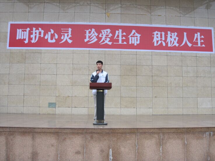 526早上升旗仪式上,来自高二、4班的毛荣同学进行了国旗下讲话——《呵护心灵,珍爱生命》,发出了关注心灵的高度、挖掘生命的深度,用心去发现生命的美,珍爱生命、健康成长的倡议。