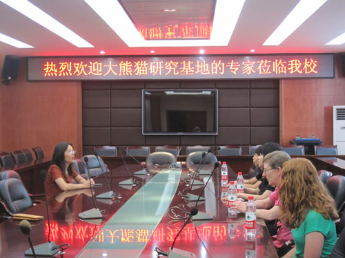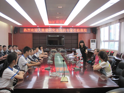 2015年6月11日上午10点,成都市大熊猫研究基地中外专家一行莅临我校。几位专家在初三年级同学中开展了一次相关于生态环境及动物保护方面的问卷调查,并于同学们亲切交流。此次活动还给予同学们很多自主权利,他们可以针对相关问题向专家提出建议,表达自己爱护环境,爱护动物的强烈愿望。整个活动在融洽的气氛中圆满结束,同学们获益匪浅。
