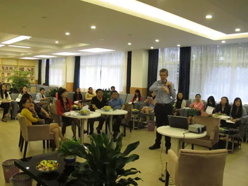 | 由金牛区教育局主办,金牛区教培中心和成都市铁路中学校协办的“中澳教师英语教学研讨沙龙”简直太国际范儿了!来自澳大利亚珀斯市教育专家Mr.Warwick Mathews为老师们做了澳洲英语教学的专题介绍。Mathew先生分享了家乡的风土人情,风趣幽默又不失严谨地向老师们介绍了中学英语写作模式,我区的老师们将自己教学中的困惑同Mathew先生做了交流。我们金牛的英语老师们经历了如此高端大气上档次,低调奢华有内涵的教学研讨活动,感觉同学们以后的英语学习会变得“So easy”啦!