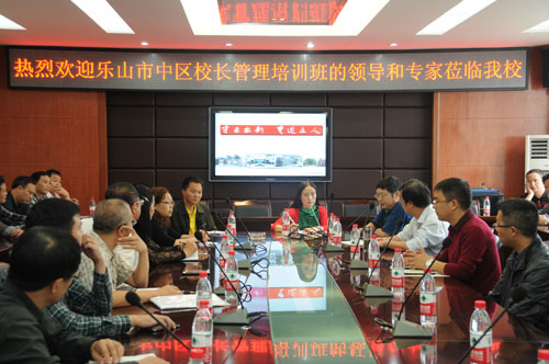 4点20分,双方人员齐聚一堂,成都铁中杨云雄校长就铁中的发展历史、办学思想、德育建设、办学成就等方面向乐山市中小学校长培训班的成员们进行了详细的介绍,成都铁中浓郁的育人氛围、突出的办学业绩,赢得了校长们高度赞誉和热烈掌声。双方还就政策支撑、民主管理、教师激励和家校合作等方面展开了交流和探讨。