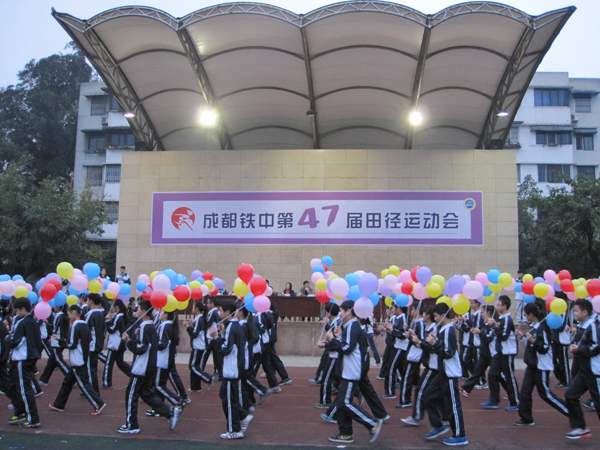 2015年11月5日上午,成都铁中运动场彩旗飘扬,雄壮的口号声此起彼伏,第47届田径运动会开幕式隆重举行。