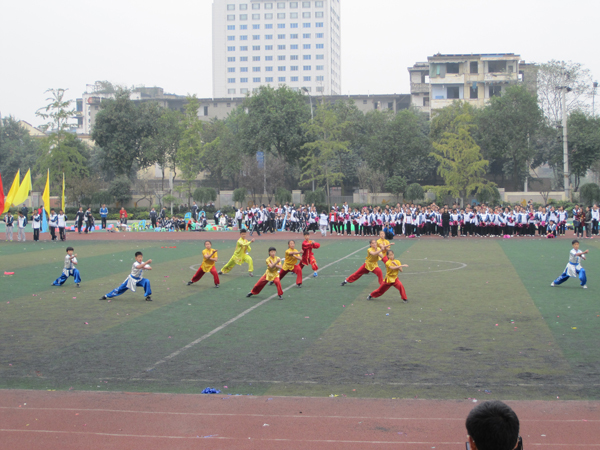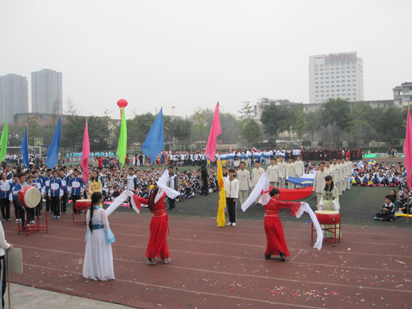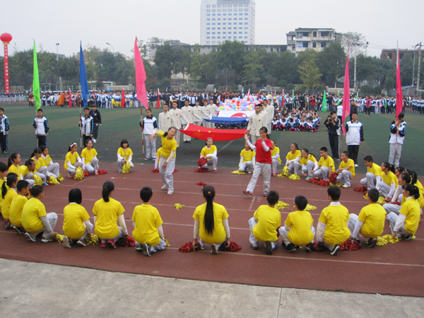 入场式结束后,进行了庄严的升旗仪式。之后,党总支吴烈书记致运动会开幕词,强调运动精神文明建设的重要性以及在运动会中公平公正,文明比赛,友谊第一比赛第二的问题。随后运动员代表高二(1)班的周洪杨同学、裁判员代表吕品老师先后宣誓。之后的初一年级的拳术表演、高一年级的啦啦操表演、校武术队的武术表演、健美操队的健美操表演将整个开幕式又推向了另一个高潮。