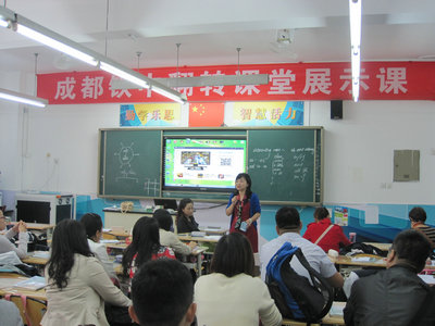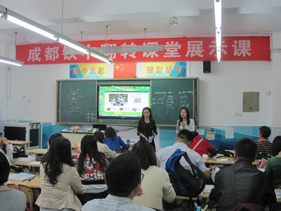 | 为进一步贯彻课改理念,推进教育现代化, 2015年10月19日,我校邓琰老师在初二年级为大家上了一堂别开生面的展示课——翻转课堂展示课。与会的嘉宾有来自全国各地北京四中网校合作学校的领导和老师。金东清副校长给大家介绍了成都铁中近年的发展情况,并就学校在教育改革方面的探索与尝试与各位同行进行了交流。