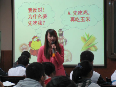 成都市铁路中学校的付娅娣老师在五楼多媒体教室现场进行高二年级生物《生态系统的能量流动》一课的讲授,本节课实践了学生为主体,教师为主导的教学模式,体现了本次培训活动的主题——在教学过程中营造高效课堂。