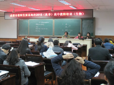 | 2015年11月24日,成都市教师发展基地学校2015(秋)高中教师培训活动(生物)在成都市铁路中学校展开,本次活动以高效课堂为主题,以课例展示结合专家点评的形式进行。