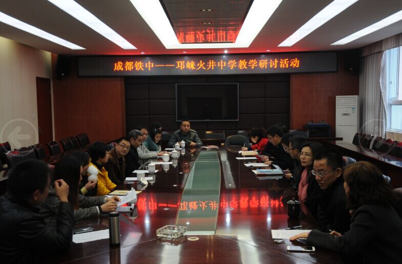 | 2015年12月4日上午,“金邛教育互动联盟结对学校”——成都铁中与邛崃火井中学联合教研活动在成都铁中顺利开展。火井中学李庆红校长一行,受到成都铁中的热烈欢迎。成都铁中金东清副校长亲自陪同并参与教研活动。此次活动由初中一、二年级担纲,分别进行了英语、数学、物理三门课程的教学研讨。活动获得极大成功,不但增进了两校友谊,而且真正促进了教学优质发展。