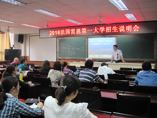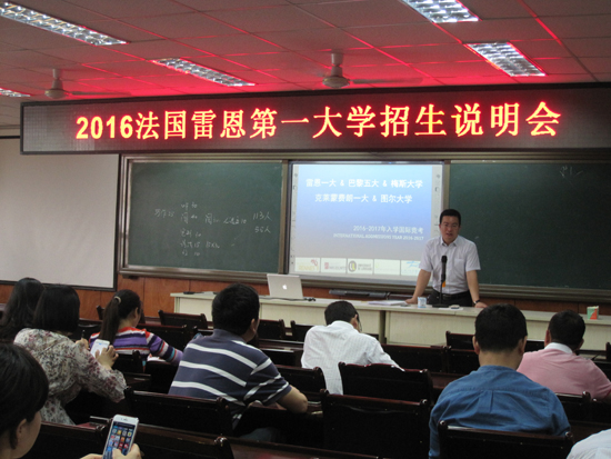 | 5月12日下午,法国雷恩第一大学中国遴选办陈主任于成都铁中为高2016届家长进行了一场精彩的招生说明演讲。法国雷恩第一大学是法国著名的公立综合性大学,发展历史可追溯到1461年。在1969年法国教育体制改革后确立为雷恩第一大学。自2012年起,法国雷恩第一大学不再面向社会,通过中介机构招生,而是采用学校直接招生的形式选拔优秀人才。至今已是在中国的第五届招生了。此次招生说明会上,陈主任针对目前中国教学的大形势,还为家长们宣讲了包括巴黎五大、图尔大学等大学在内的其他几所法国公立大学的招生情况。如陈主任所言“教育没有好坏”, 适合的才是最好的!中国优秀的孩子无论在哪里学习都是优秀的。