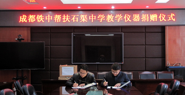 为实现教育均衡,帮扶偏远地区教育薄弱学校,发挥优质学校的引领作用,成都铁中根据金牛区教育局的安排,与石渠中学对口帮扶,每年都会捐赠一定数量的教学物资及设备给石渠中学,同时还会提供骨干教师跟岗研修帮扶,帮助石渠中学提高教师提升教学能力,促进教师队伍的建设。